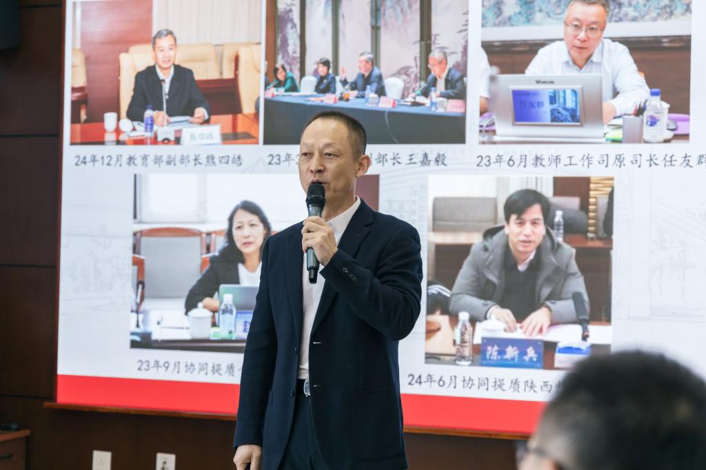 教育部教师工作司副司长黄小华在会上讲话。他代表教育部教师工作司对坚守在国家边疆地区的地方师范院校表示慰问。他表示,要聚焦教育强国建设的总体目标,整体提升师范院校和师范专业的办学水平,为乡村教育发展和乡村振兴提供坚强的人才支撑。他希望,要对标对表党中央重大决策部署、教育部部署,在省厅的指导下,用好协同提质计划,加强师范教育专业建设、教学科研建设、教师队伍建设,提升学生培养质量,服务地方基础教育事业,加快教育与人工智能融合发展,践行教育戍边使命,为教育强国建设提供有力支撑。