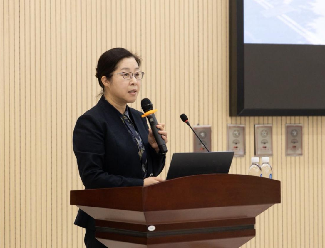黑龙江省教育厅副厅长程爽在会上讲话。她代表省教育厅感谢教育部师范教育协同提质计划对组团高校的支持,对牵头高校东北师范大学的引领、对3所M高校的帮助、对N校间的交流互助表示感谢。她充分肯定了我校在师范教育协同提质计划中所做努力及取得的各项成果,并提出三点建议:一是协同提质计划的开展应注重“质”和“量”相结合,完成数量的同时注重质量的提升;二是希望被帮扶高校在组团帮扶下,变“输血”为“造血”,持续内涵建设;三是注重工作实施过程中的“立”与“破”,产出更多创新成果。