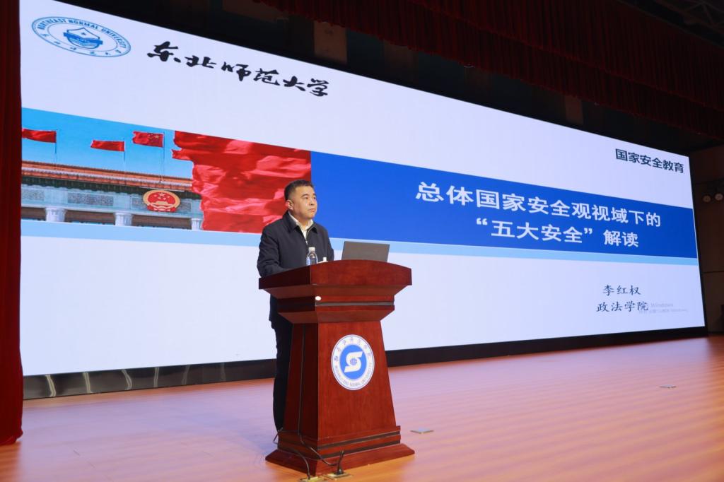 东北师范大学政法学院李红权教授进行了题为《总体国家安全观视域下的“五大安全”解读》的授课。课程以“总体国家安全观的提出与内涵”为统领,解读国防安全、粮食安全、生态安全、能源安全、产业安全在国家安全体系中的关键作用,阐释东北地区在维护“五大安全”中的重要地位,以具体案例说明东北地区在维护“五大安全”过程中作出的重要贡献,分析现实挑战,并提出对策建议。
