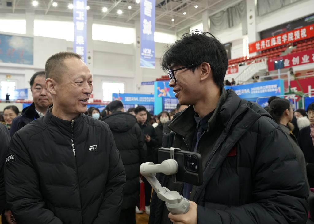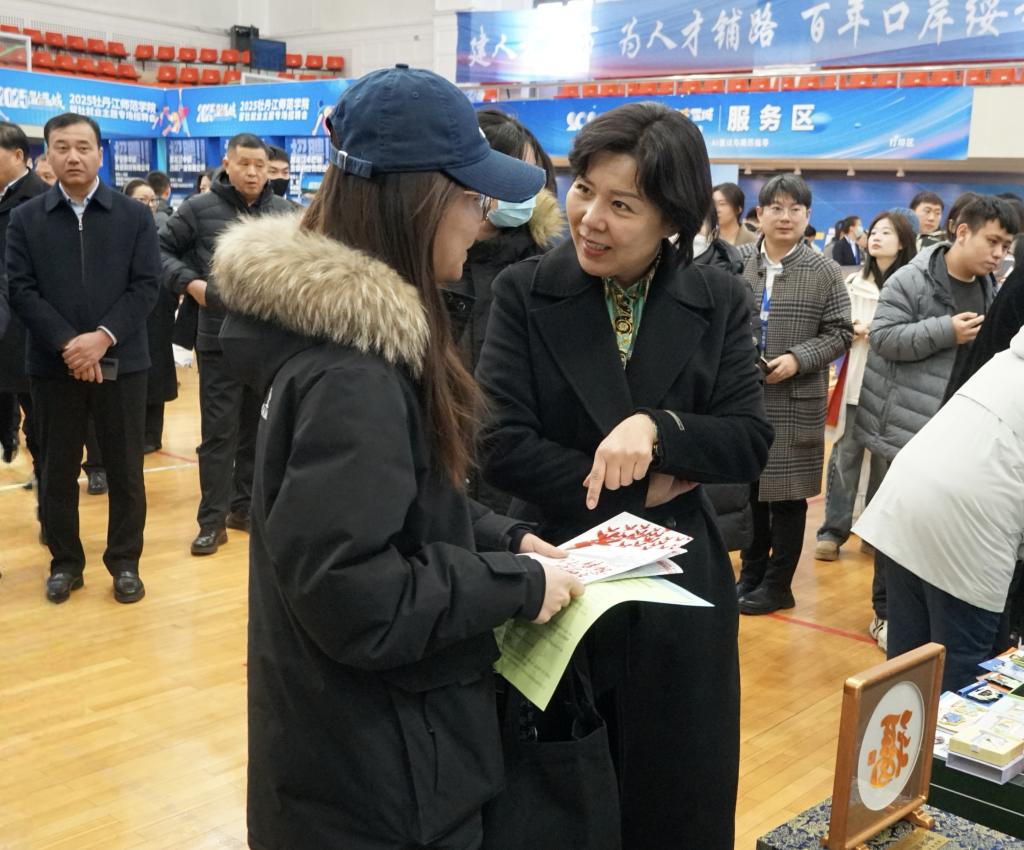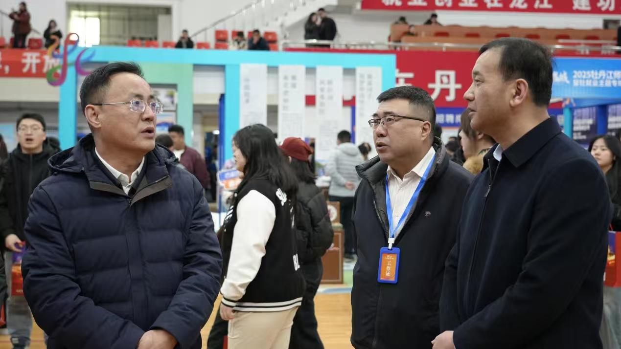 牡丹江市委常委、组织部部长邹浩走进专场招聘会现场,向广大毕业生面对面推介牡丹江市引才、留才相关政策、心贴心地传递留才诚意,并实行“市县联动、岗位统招”,为毕业生提供多元化的职业选择,也为基层一线精准输送专业人才。