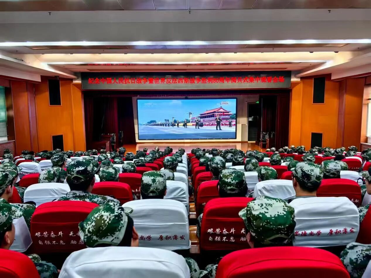 学校党委高度重视,组织全校师生以“集中观看+分散观看”相结合的方式收看大会直播,共同回望峥嵘岁月、致敬英雄先烈。直播中,全体师生聚精会神,认真聆听习近平总书记的重要讲话,专注观看阅兵盛况,赞叹声不绝于耳。
