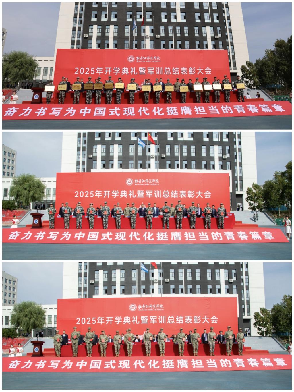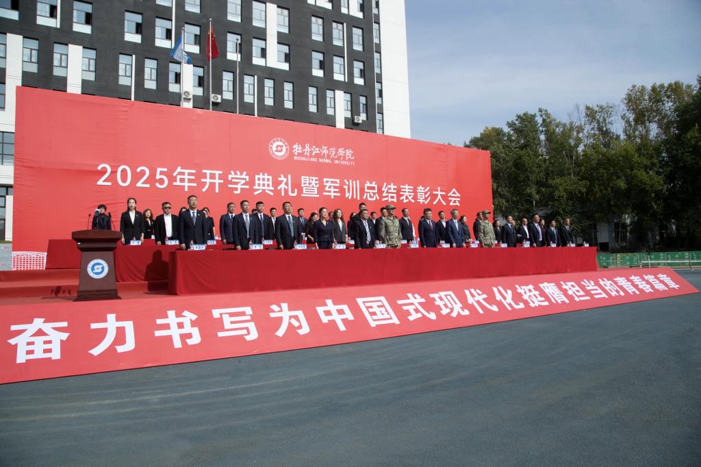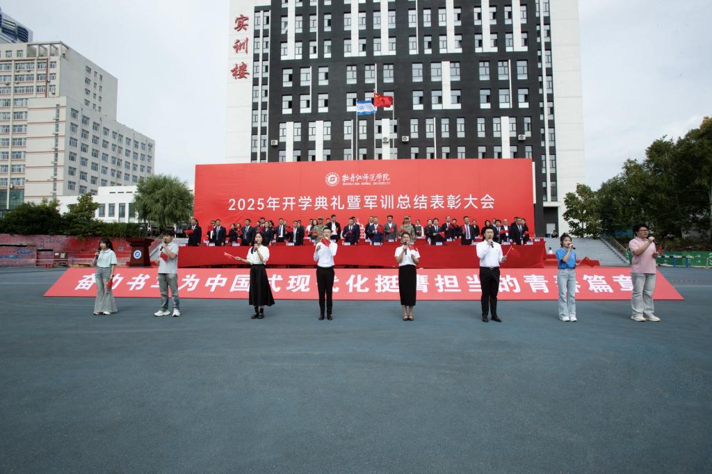 金秋启新程,逐梦正扬帆。9月14日上午,学校在田径场举行2025年开学典礼暨军训总结表彰大会。来自祖国各地的5139名学生,以及来自韩国和俄罗斯的52名留学生齐聚牡师,以青春之名,共赴未来之约。学校领导、承训部队领导、二级学院党政领导、相关职能部门负责人、教师代表、在校生代表、优秀校友代表、全体新生及家长代表参加大会。大会由党委副书记陈海萍主持。