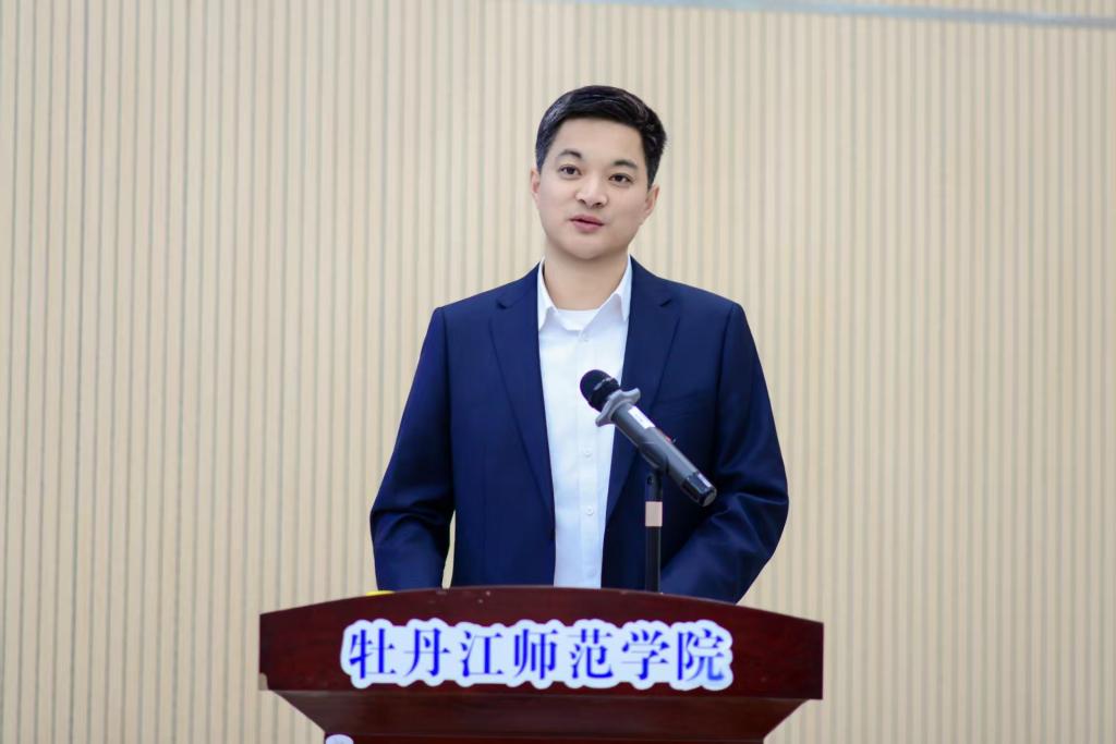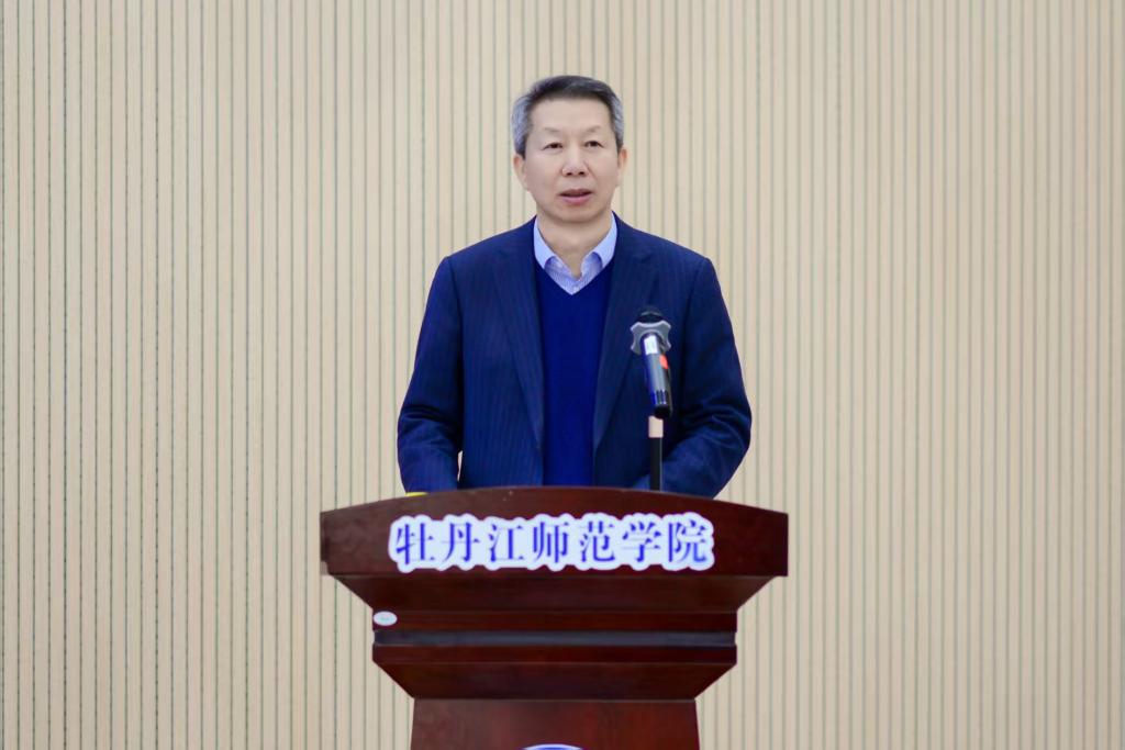 丛喜权在会上致辞。他表示,学校深入贯彻落实国家教育强国建设规划纲要(2024-2035年),聚焦乡村教育办学特色创新发展,在学科建设、人才培养、社会服务等领域取得了显著成效。他全面回顾了学校深耕“国培计划”的坚实历程与丰硕成果,系统阐释了UGIS协同育人模式的核心内涵与实践路径。他指出,该模式将依托高校、政府、教研院、中小学及幼儿园四方联动机制,着力构建政策协同、资源共享、实践共育、数字赋能的协同育人新生态,力争为牡丹江地区乃至全省、全国的乡村教师队伍建设和教育高质量发展,提供可复制、可推广的“牡师方案”,贡献坚实有力的“牡师力量”。