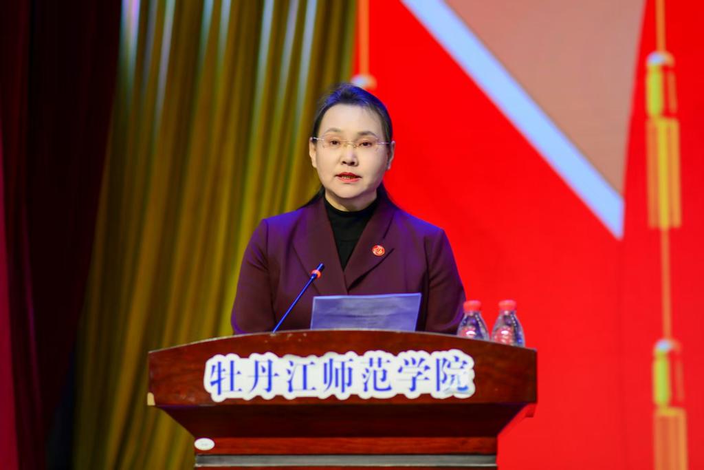 张艳霞代表学校妇联作表态发言。她表示,当选首届妇联主席深感责任重大、使命光荣,将与全体执委一道,坚持思想铸魂、坚守育人初心、弘扬社会风尚、践行服务宗旨、创新发展举措,在牡丹江市妇联的悉心指导下,在学校党委的坚强领导下,同向同行、蓄势发力,为中国式现代化牡丹江实践献计出力,为把学校建成区域应用型高水平师范大学贡献巾帼力量。