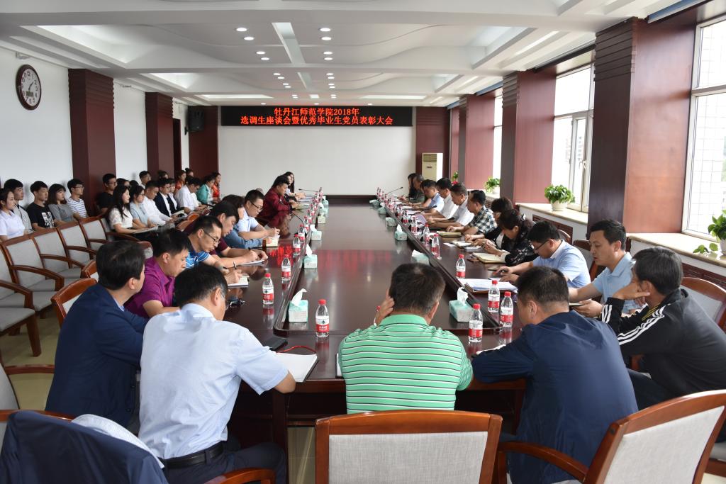 6月21日下午,学校在综合楼1206会议室召开2018年选调生座谈会暨优秀毕业生党员表彰会。校党委书记王育伟,党委副书记杨春文,党委常委、组织部部长张冬出席会议;各二级学院、研究生学院党政负责人、各职能部门负责人及2018年考取选调生的毕业生党员参加会议。会议由党委常委、组织部部长张冬主持。