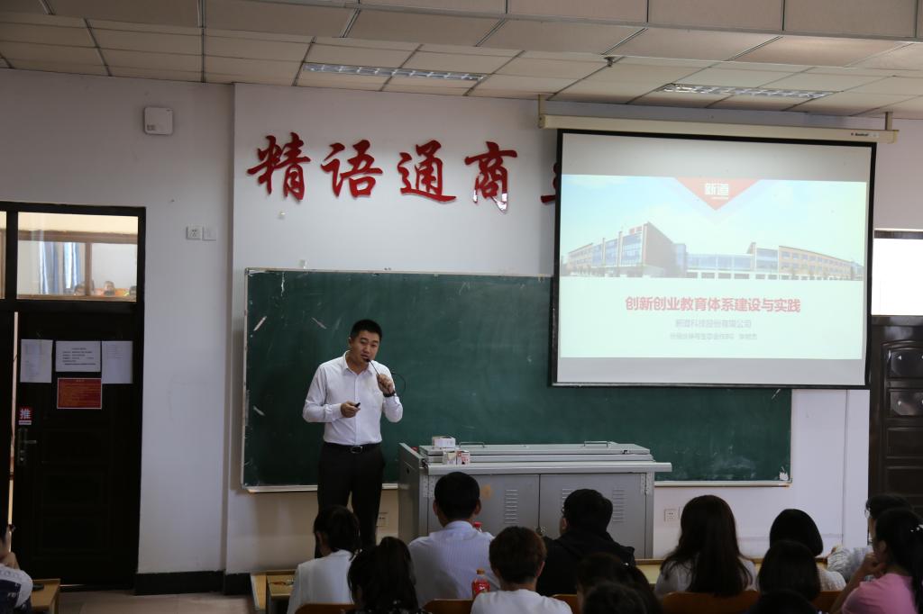与此同时,创业就业指导中心还特邀新道科技股份有限公司伙伴联盟部BG副总经理李树杰先生在综合楼228室为我校师生作题为《创新创业教育体系建设与实践》的专题讲座。我校创业就业指导课教师、各二级学院辅导员及大学生代表总计200余人参加了讲座。讲座中,李树杰经理讲述了创新创业教育以及创新创业教育的本质等内容,并通过创新创业项目案例让大家深切地感受到创新创业的力量。他鼓励大学生在大学时代要学会把握机会,多去参与到创意、创新、创业的活动中,锻炼自己的创新创业能力,为将来就业创业奠定坚实的基础。讲座后,李经理与学生进行了互动交流,学生针对自己学习或创业过程中面临的问题进行了提问,李经理给予了详细的解答,现场气氛十分热烈。