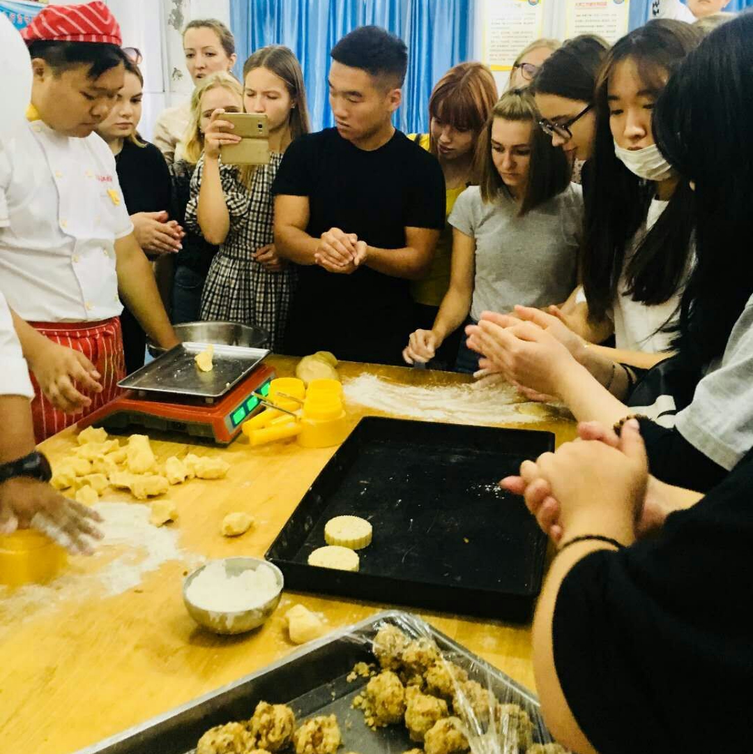 9月20日上午,国际教育学院各班级主课教师图文并茂、生动详细地为学生讲解了中秋节的历史及文化知识。下午组织新生40余人到牡丹江技师学院学习制作并品尝月饼。在牡丹江技师学院师生的精心准备和悉心教导下,每个留学生都了解了月饼的相关知识,还亲手烘焙了传统式、广式等多种类型的月饼,课堂气氛极其热烈。同学们对月饼的历史和制作过程产生了浓厚的兴趣,踊跃地投入到实践中,纷纷展示自己的“厨艺”。最后,留学生们与牡丹江技师学院师生分享了自己的劳动成果,共同品尝了节日的甜蜜。