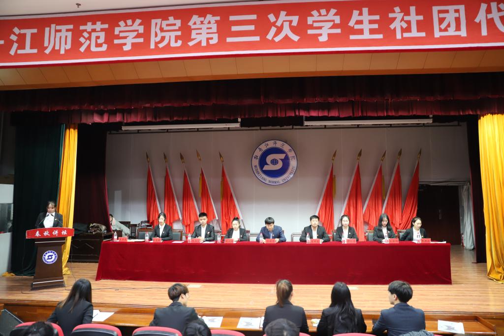 大会在激昂的校歌中落下帷幕。会后,全体委员召开了大学生社团联合会三届一次会议,等额选举出本届主席团成员。音乐与舞蹈学院学生郑仁路当选第三届大学生社团联合会主席,教学科学学院学生李丹凤、经济与管理学院学生程海发、西方语言学院学生纪立新当选第三届大学生社团联合会副主席。