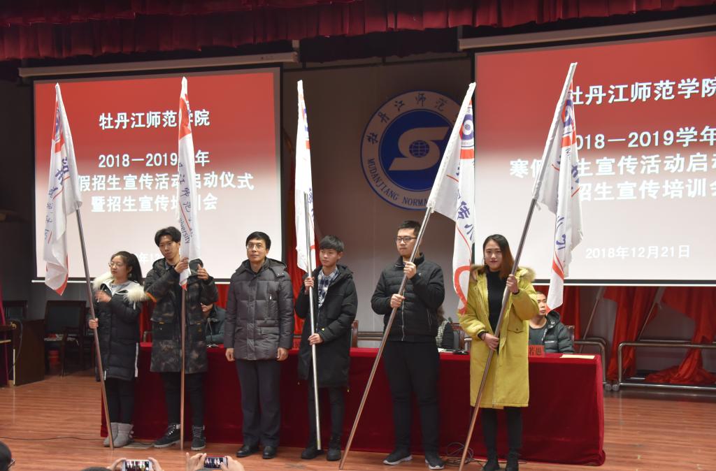 仪式上,学生处招生科科长柳若愚宣读了《关于开展2018-2019学年寒假招生宣传活动的通知》,文学院2018级湖南籍学生杨豪豪代表招生宣传学生发言,党委常委、副校长杨敬民为招生宣传团队代表授旗。启动仪式结束后,招生科科长柳若愚对与会学生进行了招生宣传专题培训。