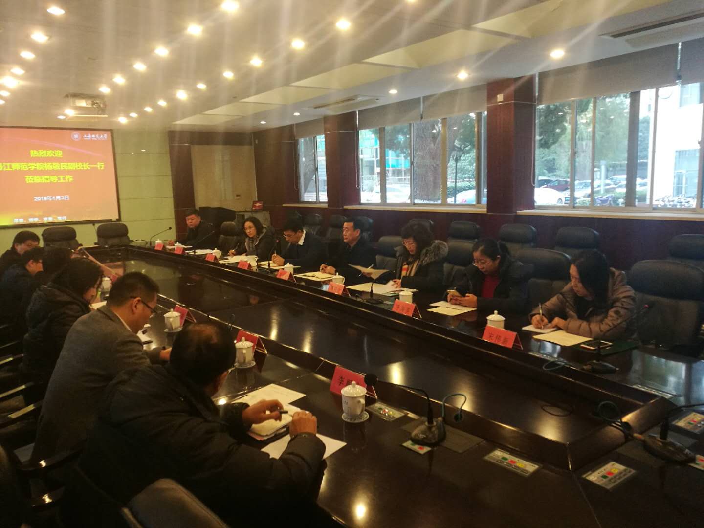 1月3日至4日,校党委常委、副校长杨敬民带领教务处、人事处、学生处、党委(校长)办公室、评估中心、创业就业指导中心、教育科学学院相关负责同志一行8人,赴教育部“易班”发展中心、上海师范大学、上海出版印刷高等专科学校、中国商飞上海飞机设计研究院、上海行知中学、智慧树公司总部等6家单位考察调研。