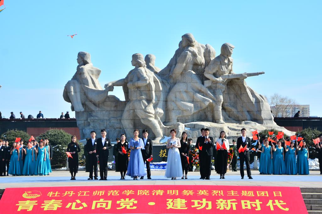为铭记为民族独立、人民解放和国家富强、人民幸福做出巨大贡献和牺牲的英雄烈士,努力营造传承英烈精神、奋进新时代的良好氛围,4月3日,校团委在牡丹江市红色地标“八女投江”群雕广场举行“青春心向党 建功新时代”2019年清明祭英烈主题团日活动,全校共青团干部、团员青年代表200余人参加团日活动。牡丹江电视台、牡丹江晨报报道了此次活动。
