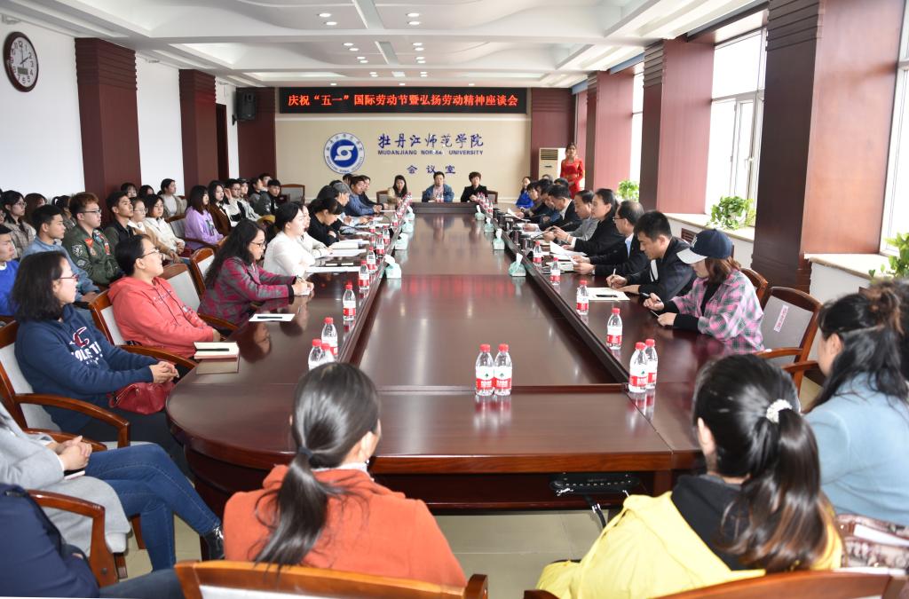 座谈中,马克思主义学院教师董一冰、数学科学学院教师张国铭、物理与电子工程学院教师张蕾及学生代表应用英语学院2018级研究生华晓艺分别发言,分享感受与体会、畅谈理想与未来。荣获牡丹江市2016-2018年劳动模范称号、应用英语学院教师韩竹林,代表劳模教师群体宣读《当好主人翁 建功新时代》倡议书,号召全校教职工做有理想信念、有道德情操、有扎实学识、有仁爱之心的好教师,为建设特色鲜明的地方高水平师范大学贡献智慧和力量。