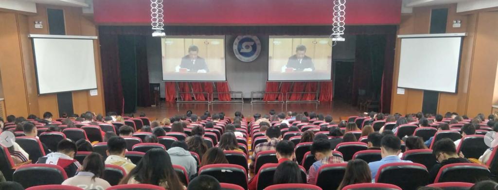 座谈会后,校党委常委、副校长张冬与团干部、团员青年在春秋讲坛一同观看了纪念五四运动100周年大会实况直播。