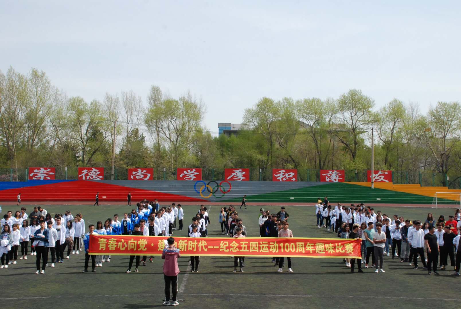 5月4日上午,校团委在第一田径场举办“青春心向党·建功新时代”纪念五四运动100周年趣味比赛。校党委常委、副校长张冬,团委副书记陈晓东,各二级学院团总支书记、团干部、团员青年代表400余人参加了活动。