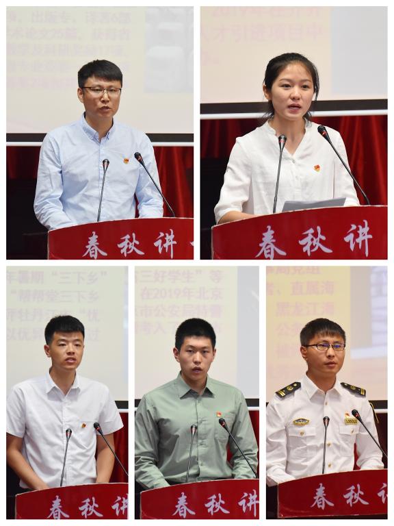 汇报会上,应用英语学院青年教师党员韩竹林以《青春谱写奋斗路 红烛映照党旗红》为题,以朴实无华的语言讲述了自身从教十几年的学习、工作及奋斗历程。韩竹林老师作为青年教师党员,在教书育人的工作岗位上为人师表、乐于奉献,严谨的治学态度及突出的科研教学成果给予师生党员深刻的教育和巨大的鼓舞。