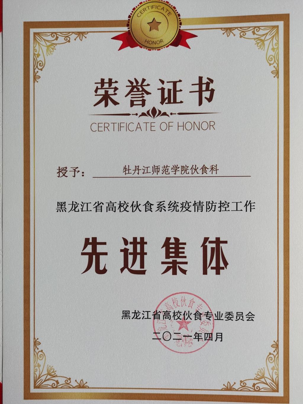 近日,黑龙江省高校伙食系统疫情防控工作先进集体和先进个人评选结果公布,我校食堂荣获“黑龙江省高校伙食系统疫情防控工作先进集体”荣誉称号,伙食科负责人伍勇兵、思园餐厅经理王志伟、教工餐厅管理员云志龙被评为“黑龙江省高校伙食系统疫情防控工作先进个人”。