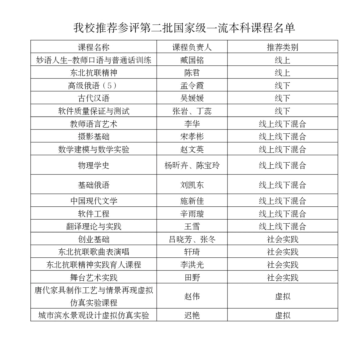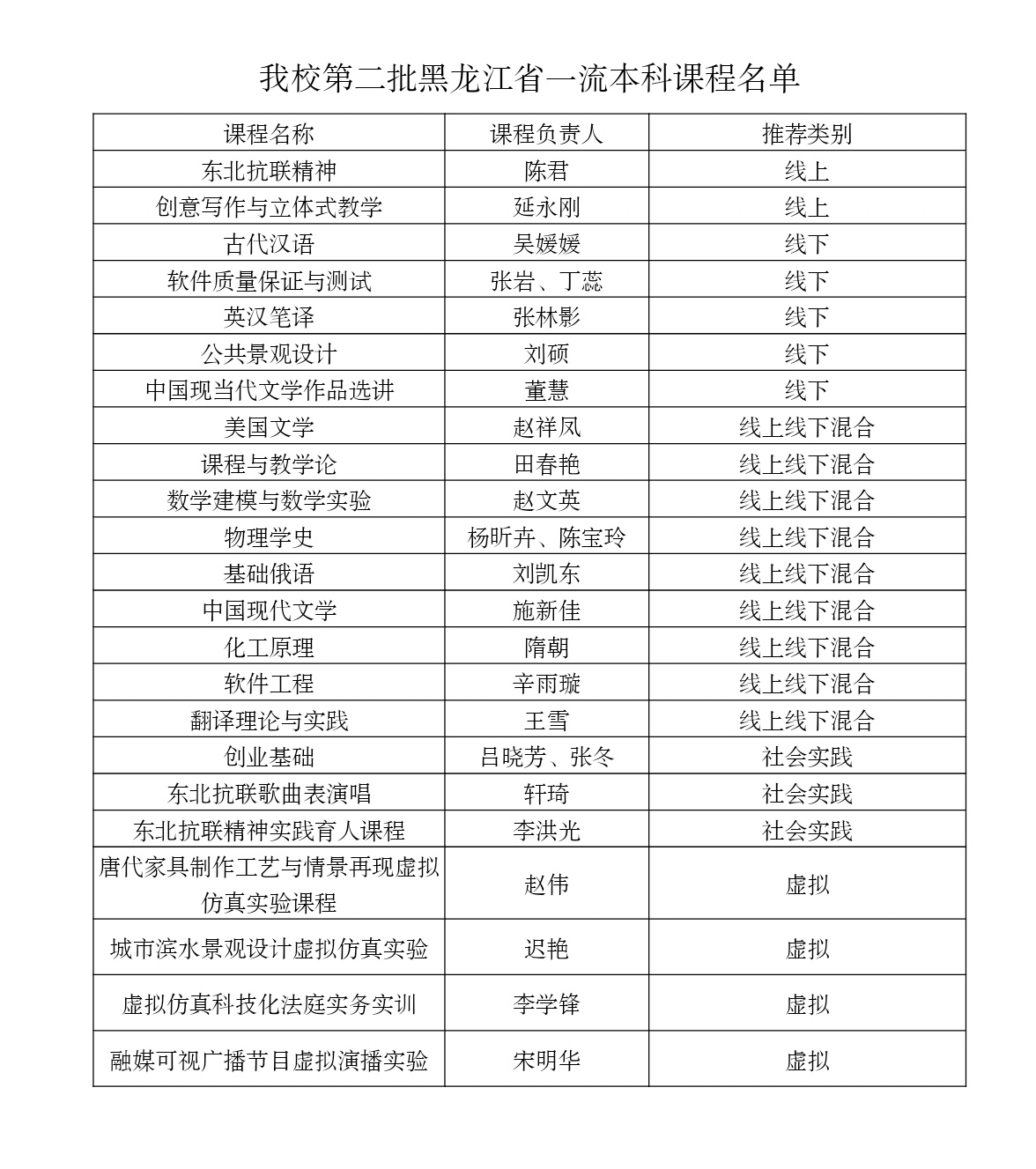 近日,黑龙江省教育厅发布了《关于第二批省级一流本科课程认定暨遴选推荐第二批国家级一流本科课程结果的公示》,我校23门课程成功入选。其中,有19门课程被推荐参评第二批国家级一流本科课程。