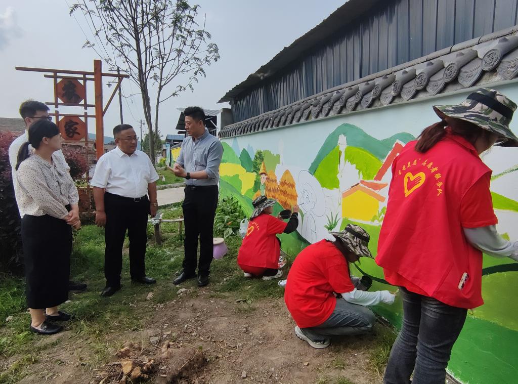 党委副书记张燕梁首先看望了由美术与设计学院星光美愿志愿者服务队成员组成的中华文化传承团师生,带队教师王兆宇和志愿者们向领导介绍了“红色画卷”主题墙绘的设计理念、内容取材、表达内涵。六幅大型艺术墙绘与孤榆树村貌和谐统一、互映成趣,充分展示了我校志愿者良好的艺术素养,展现了中华文化传承效果,有效助力村容村貌建设。志愿者们通过艺术创作,传承孤榆树抗联革命文化,增强了志愿者和参观游客的历史自信、文化自信。炎炎烈日下,志愿者创作的身影成为孤榆树村最靓丽的风景。