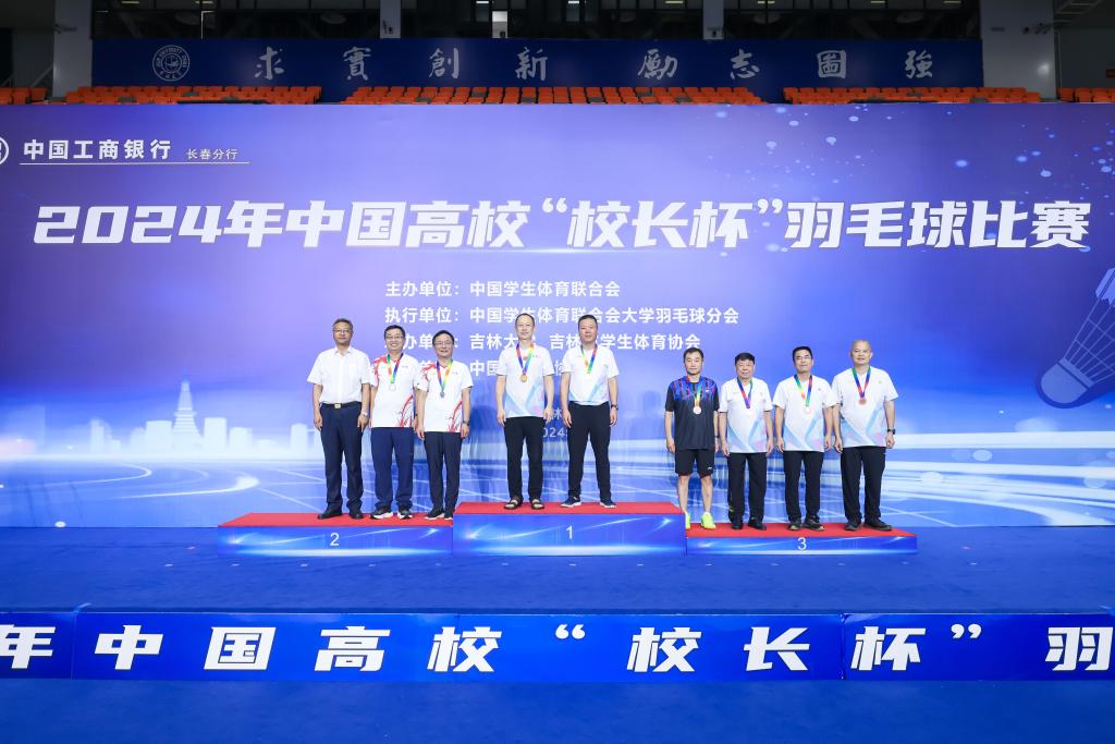 本次比赛由中国学生体育联合会主办,中国学生体育联合会大学羽毛球分会执行,吉林大学、吉林省学生体育协会承办,共有来自全国各地的99支队伍、220名选手参赛。经过激烈角逐,院长、党委副书记李春江和副院长、党委常委张晓祥组队获得男子双打冠军;院长、党委副书记李春江与教育部副总督学刘锦组队获得混双并列第五名。