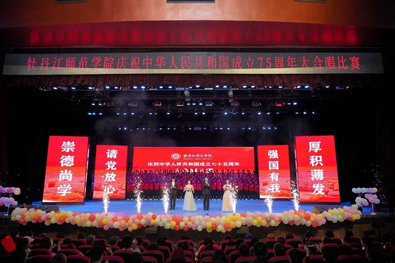 为热烈庆祝中华人民共和国成立75周年,热情讴歌75年来的光辉历程和伟大成就,切实增强师生员工的民族自豪感和历史使命感,进一步激发为实现中华民族伟大复兴而努力奋斗的坚定决心。9月25日下午,学校庆祝中华人民共和国成立75周年大合唱比赛在第一音乐厅举行,牡师青年用嘹亮的歌声向伟大的祖国生日献礼。学校领导王志浩、李春江、张燕梁、张艳霞、张晓祥、孙伯勇、刘恒文出席比赛,全校师生代表共计4000余人参加、观看比赛。