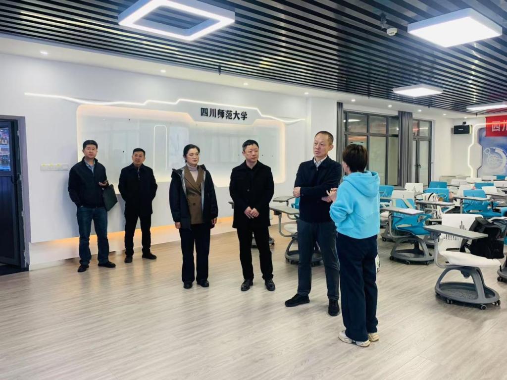 11月18日上午,李春江院长带队赴四川师范大学师范生教学能力训练国家级实验教学示范中心进行实地调研学习,参观了师范生教学能力实验室、虚拟立体教学实验室、STEM教育实训室、书画实验室。四川师范大学国有资产管理处处长向吉建,教务处副处长、师范教育管理办公室副主任王威,师范生教学能力训练国家级实验教学示范中心实验室主任谢小川参加调研会,双方围绕教师技能训练、师范生技能培养、实训平台信息化建设、课程建设等内容开展了深入交流。