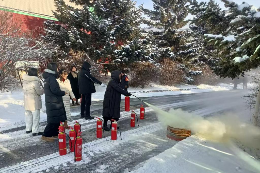随后,保卫处工作人员现场讲解干粉灭火器的使用方法,图书馆员工进行了现场实地操作。