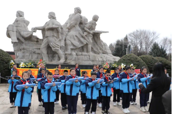 上午10时,八女投江烈士群雕前,少先队员们身着整齐校服列队肃立并唱响国歌,稚嫩的脸庞写满庄重。口风琴奏响《我们是共产主义接班人》,金色音符与江畔垂柳交织成青春乐章。高年级学生通过情景朗诵《东北抗联英雄说》,将八位女战士在冰天雪地中英勇就义的场景具象化为震撼画面,参加活动的所有师生向革命烈士默哀并敬献素菊。