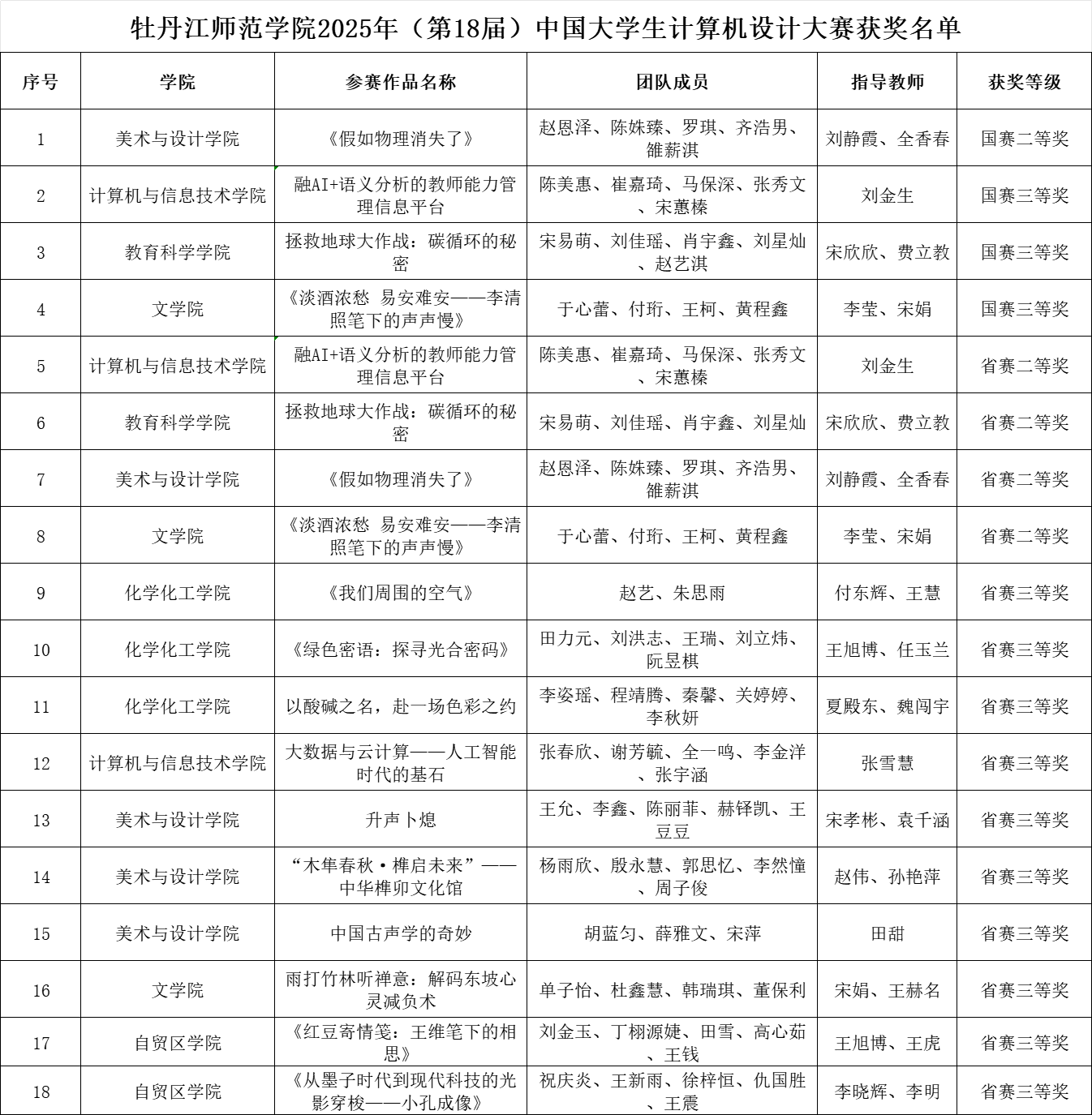 近日,第18届中国大学生计算机设计大赛全国总决赛圆满落下帷幕。经过激烈角逐,我校最终荣获国赛二等奖1项、三等奖3项,省赛二等奖4项、三等奖10项,并荣获省赛“最佳组织奖”。