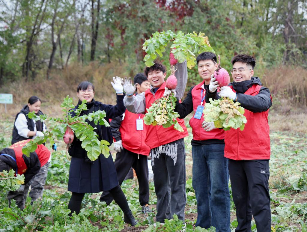 为深入贯彻落实“五育并举”的教育方针,扎实推进劳动教育实践育人工作,近日,团委副书记赵薇、计算机与信息技术学院团总支副书记孙光野带领牡师青年志愿者与紫光小学校长刘春霞、副校长芦彬、以及紫光小学的小学生们一起在紫光小学种植田开展秋收采摘活动。