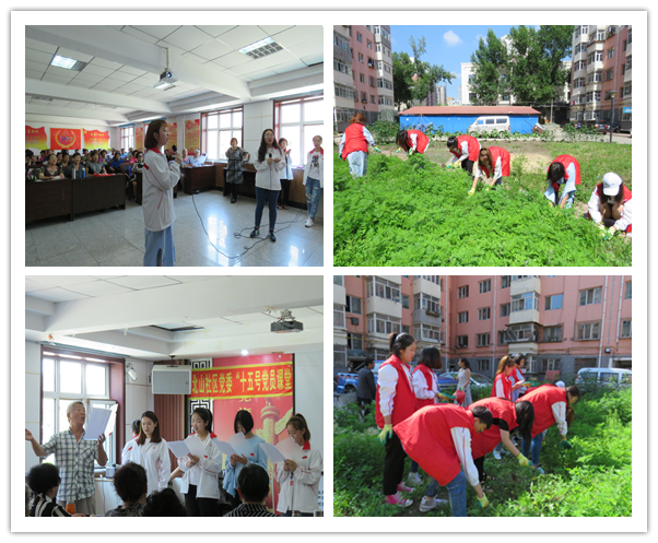 7月10日,活动的第一天,陈欣宇同学主持了开幕活动。男声合唱《军中绿花》和诗朗诵《祖国!我的母亲》给爷爷奶奶带来了欢声笑语,也拉进了两代人之间的情感交流。除此,实践团成员在炎炎夏日下帮助北山社区进行了除草活动,使社区环境变得更加整洁。7月11日实践团成员步行赴北山公园并在纪念碑下集合,带领党员开展宣誓活动,重温入党誓词。成员们还组织了故事会、唱红歌,活动气氛慷慨激昂。7月12日实践团成员为北山社区的爷爷奶奶们表演了舞台剧《八女投江》,以向历史致敬。
