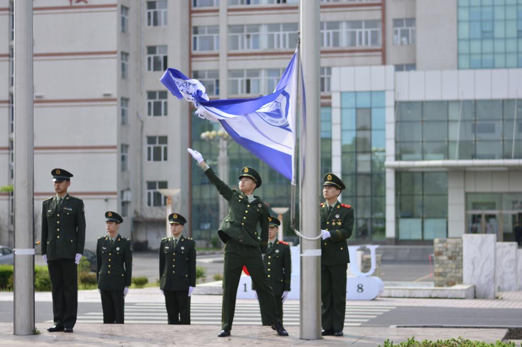 仪式在嘹亮的国歌、校歌声中拉开帷幕。升旗手振臂一挥,五星红旗、校旗相继冉冉升起,迎风飘扬。全体师生庄严肃立,行注目礼。