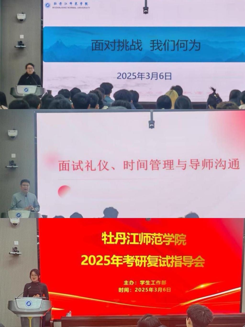 为帮助2025年考研学子更好地备战复试,解决在复试和调剂过程中遇到的难题。3月6日下午,学校在实训楼404室举办2025年考研复试指导会,全校百余名备考研究生复试的学生参会,指导会由学生工作部副部长刘旭升主持。
