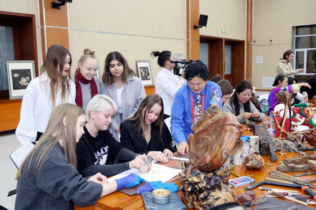 本次活动共展出了9期研修班学员的代表性作品,搭建了开展现场教学的沉浸体验文化场景,开展了生动有趣的非遗技艺体验课教学。留学生们在非遗传承人的指导下,做出了一件件非遗手工技艺作品,感受到中华优秀传统文化的丰富内涵。