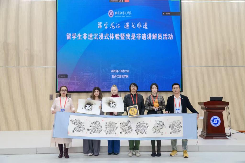 10月22日,学校举办了“留学龙江·遇见非遗——留学生非遗沉浸式体验暨我是非遗讲解员活动”。学校副院长、党委常委张艳霞,省乡村教师教育发展学院(继续教育学院)直属党支部书记王明莉,国际交流合作处处长赵天民,非遗传承人研培计划项目首席专家、文学院教授宋娟参加了本次活动。王明莉主持活动。