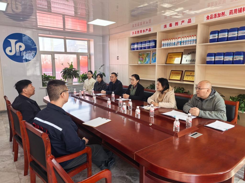 座谈结束后,张冰一行在企业负责人陪同下参观了公司生产调度中心、消毒产品制造车间等,详细了解了企业在安全生产、绿色环保等方面的技术应用和岗位设置。