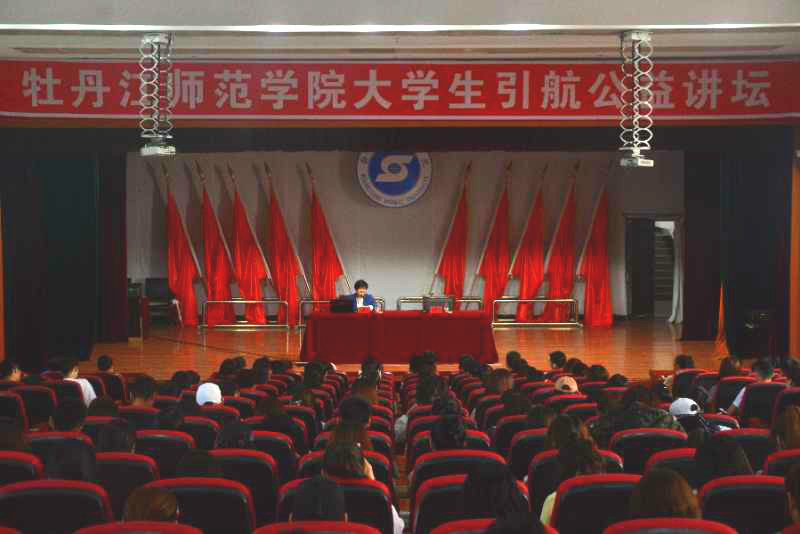 5月19日上午,第七期大学生引航公益讲坛“小小绣花针 带动大产业”在春秋讲坛举行。全国人大会代表、牡丹江渤海靺鞨文化发展有限公司董事长孙艳玲女士到会主讲,各二级学院的青年学生代表400余人参加了活动。校学生会主席赵心玉主持讲坛。