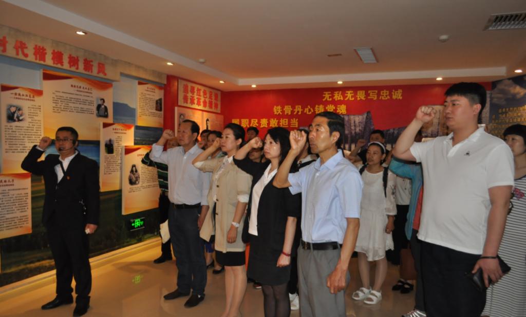 各展厅内分别展示了中国共产党反腐倡廉制度建设历史沿革、正面廉政先进人物事迹和反面贪腐典型案例,以及世界观、人生观和价值观等警示教育。基地选取了大量的国内和市内正反案例,充分运用了现代科技手段,将声、光、电元素有机融合,通过图片介绍、投影观看,情景再现等方式,给全体馆员带来了全方位、多角度、最直接的视觉冲击和心理震动。展馆内一幅幅真实的反腐画面,一例例触目惊心的警示大案,令人深受教育。最后,全体党员重温入党誓词,共同接受了警示教育洗礼。