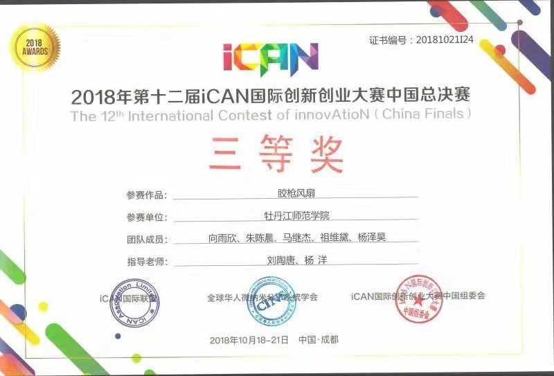 经过三天的比赛,由物理与电子工程学院教师刘陶唐、吴同华指导,袁佳欣、胡钟崴、叶观勇、刘越、王珊同学的作品“多功能水杯”荣获全国二等奖;由物理与电子工程学院教师刘陶唐、教务处杨洋指导,向雨欣、朱陈晨、马继杰、祖维黛、杨泽昊同学的作品“胶枪风扇”荣获全国三等奖。