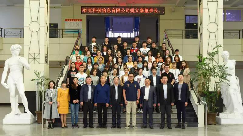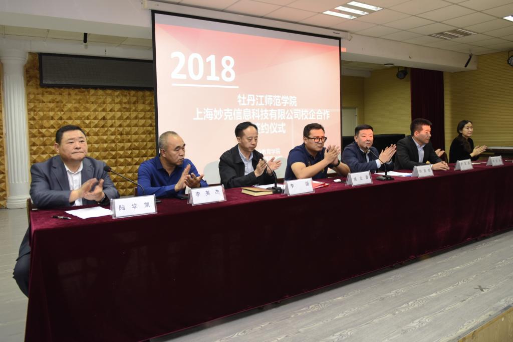 学校创业就业指导中心主任、创业教育学院院长李强代表学校与上海妙克信息科技有限公司联合创始人姚立嘉博士在合作协议书上签字。