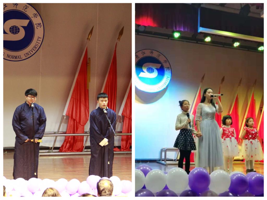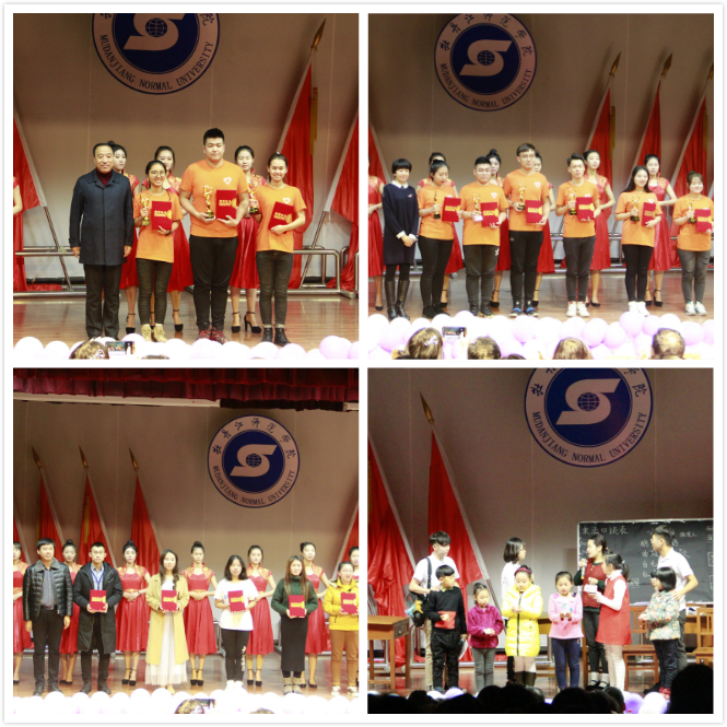 晚会以星空为背景,传递爱心为主题,包括文艺节目与颁奖典礼两个环节。在文艺表演中,学生们根据“公益家教”和暑期“三下乡”社会实践活动实际,自编自演了歌舞、相声、话剧等精彩的节目。公益家教中一直被帮扶的小朋友刘玥林也来到节目现场,与志愿者们合唱了歌曲《最好的未来》,歌声中饱含着他们对未来的无限希望,绽放着青春与梦想的光芒。颁奖典礼中,数学科学学院党委书记张启龙、院长王岚、副院长王冰致颁奖词,校纪委书记刘峰,教育科学学院党委书记郑维东,校团委副书记陈晓东分别为公益家教优秀志愿者、暑期“三下乡”社会实践优秀志愿者和突出贡献志愿者颁奖。晚会通过视频再现了“公益家教”、暑期“三下乡”社会实践活动的点点滴滴。最后,在三下乡全体志愿者与特邀嘉宾付琳燃小朋友共同演唱的歌曲《星星》中,晚会画上了圆满的句号。
