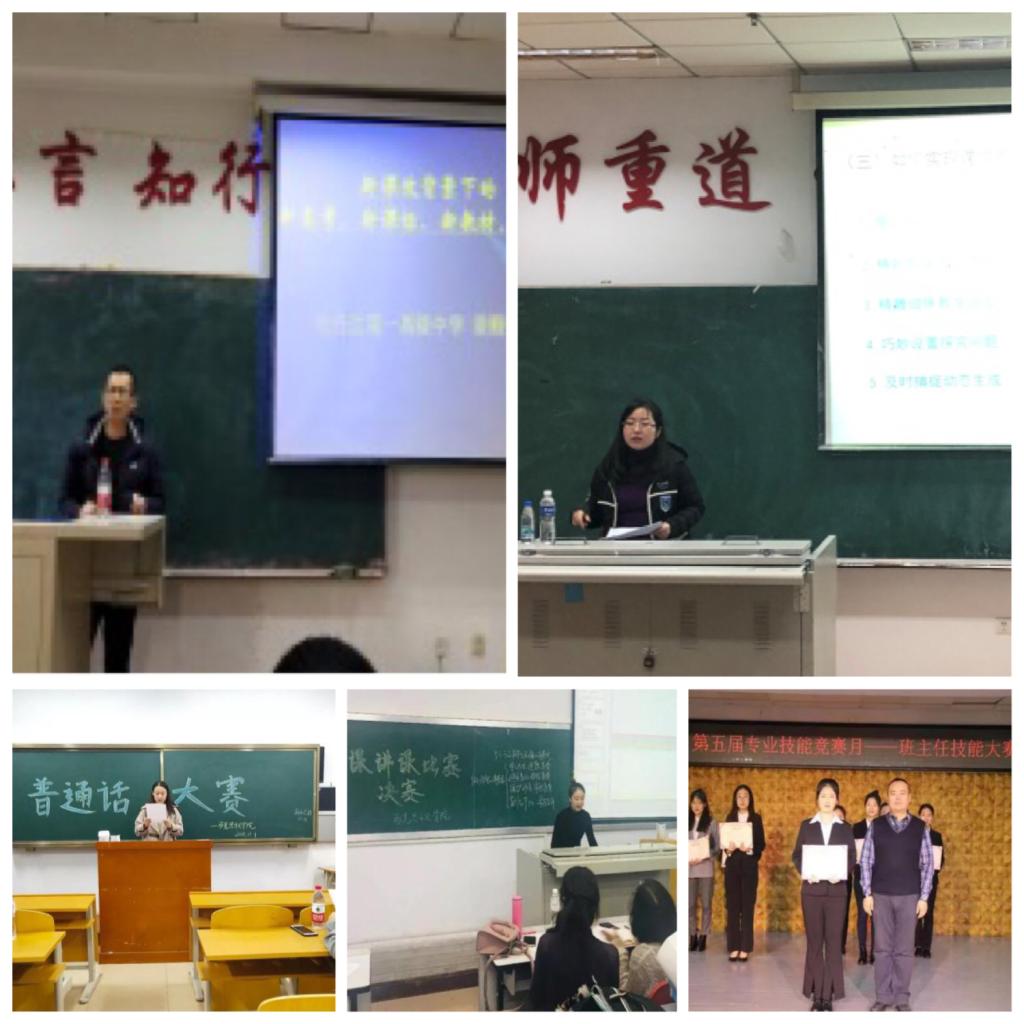 对2018级大一学生,设定了基础技能巩固训练,包括三笔字训练、普通话训练、演讲与口才训练等,并在活动月期间开展了各项比赛,检验了训练成果。对2017级学生,更加重视课程设计和课程讲授等方面技能的培养,设定了说课讲课训练、PPT制作训练、演讲与口才训练等,并在活动月期间进行了各项比赛。对于2016级学生,活动设计更加注重与高中课堂相融合,马克思主义学院邀请牡丹江第三高级中学教师苏秋颖、牡丹江市第一高级中学教师姜殿锋做专题讲座,使学生们了解了新时代政治教师必备的核心素养及新课改下政治教师所面临的挑战和应对方法;学生们走进了第一高级中学的政治课堂,与一中师生共同研习教学技能;举办了说课讲课比赛、班主任技能大赛等锻炼性比赛,为2016级学生微格教学和实习实践打下了良好的基础。