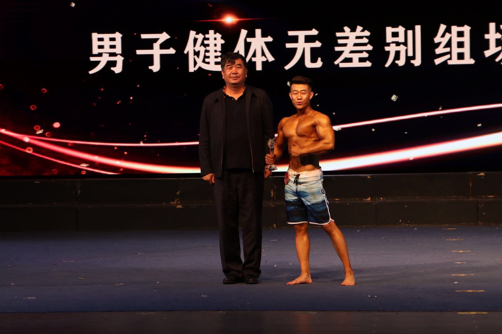 党委常委、纪委书记刘峰为男子健美无差别组获奖运动员颁奖
