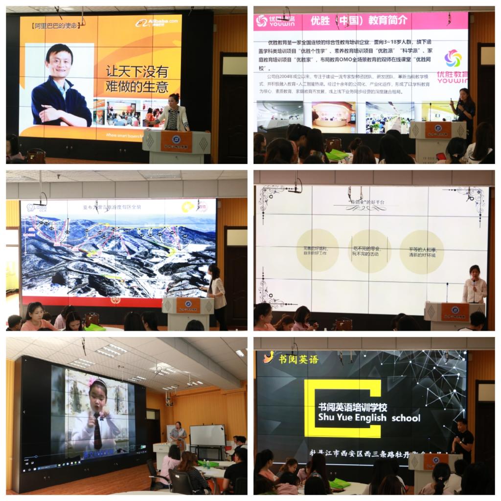 5月15日下午,应用英语学院于综合楼沉浸式远程互动教室举办春季专场招聘宣讲会,阿里巴巴全球外贸会员企业、安世联合商务服务(北京)有限公司、北京优胜教育、好未来励步英语、黑龙江亚布力阳光度假村有限公司、阳光外国语学校、托马斯英语学习馆、书阅英语培训学校等八家单位参加本次招聘宣讲会,招聘会取得了良好效果。