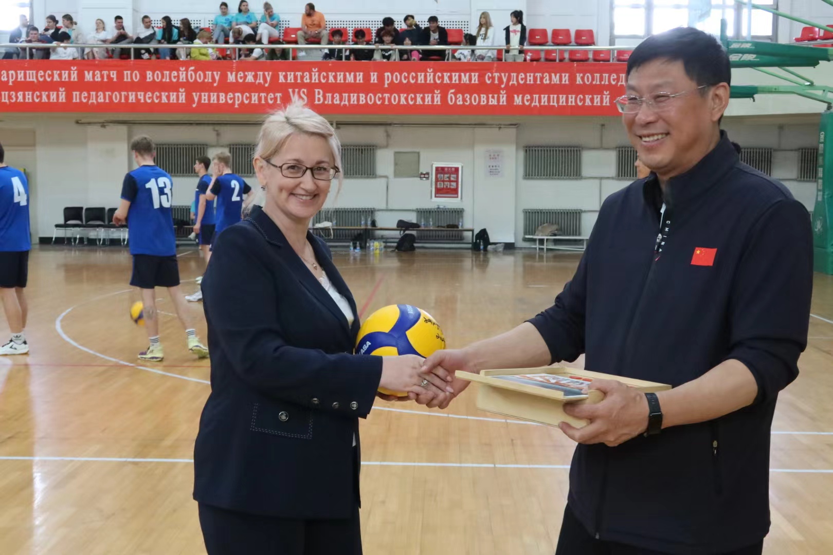 为推动教育交流,丰富学校文化生活,加深中俄师生间的情感纽带,共同营造健康向上、充满活力的校园氛围,5月24日下午,我校联合符拉迪沃斯托克基础医学院举办中俄师生排球友谊赛。