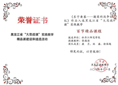 近日,黑龙江省教育厅主办的“大思政课”实践教学精品课建设与遴选活动结果公布,我校马克思主义学院选送的两门课程成功入选“黑龙江省‘大思政课’实践教学百节精品课程”,同时我校获批黑龙江省“大思政课”实践教学协作共同体高校。