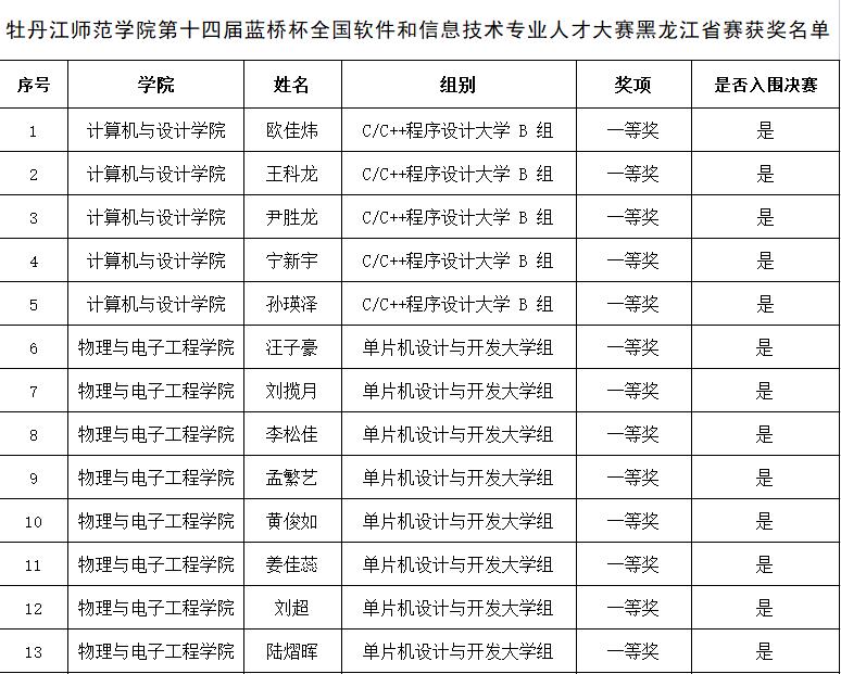 近日,由教育部和国家工业和信息化产业部联合举办的第十四届蓝桥杯全国软件和信息技术专业人才大赛黑龙江赛区比赛落下帷幕。我校学生荣获一等奖13项、二等奖25项、三等奖12项,获得一等奖的13名同学成功晋级全国总决赛。