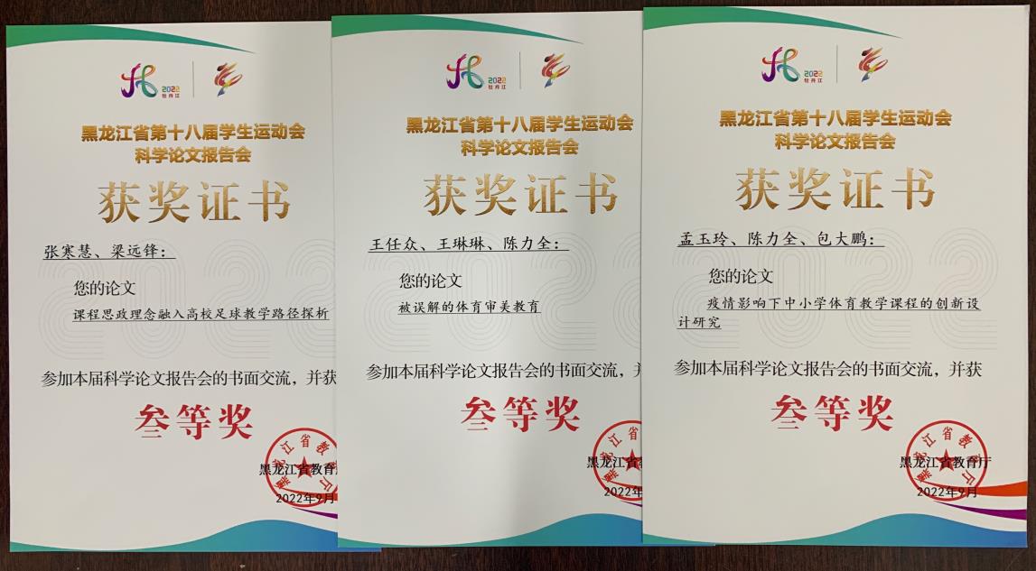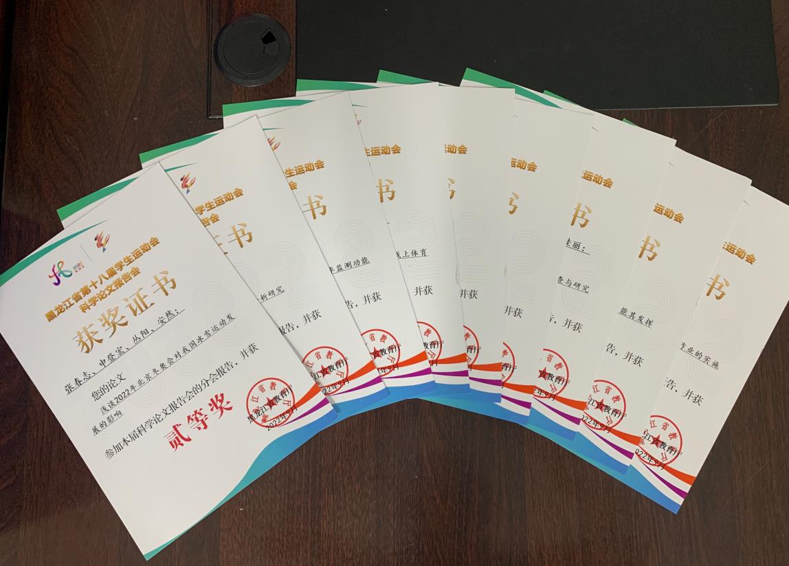 近日,由黑龙江省教育厅主办、黑龙江省高等学校体育教学指导委员会承办的“黑龙江省第十八届学生运动会论文报告会”在线上举行。我校有16篇论文榜上有名,其中一等奖4篇,二等奖9篇,三等奖3篇,占被录用论文总数6.75%,创造了我校参加此类学术活动以来的最好成绩。