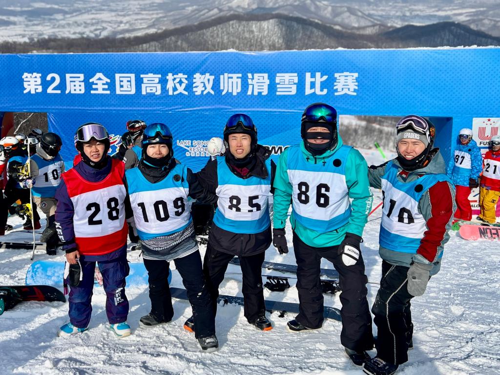 近日,第二届全国高校教师滑雪挑战赛在吉林万科松花湖隆重举行。经过激烈角逐,我校教师代表队在比赛中斩获多项殊荣。其中,体育与健康科学学院马驰、张有明在男子教授甲组单板平行大回转中荣获第四名和第十名,侯邢晨、周晶分别在男子和女子教师甲组单板平行大回转中分获第七名和第九名,生命科学与技术学院金哲在男子教师甲组单板平行大回转中荣获第八名。