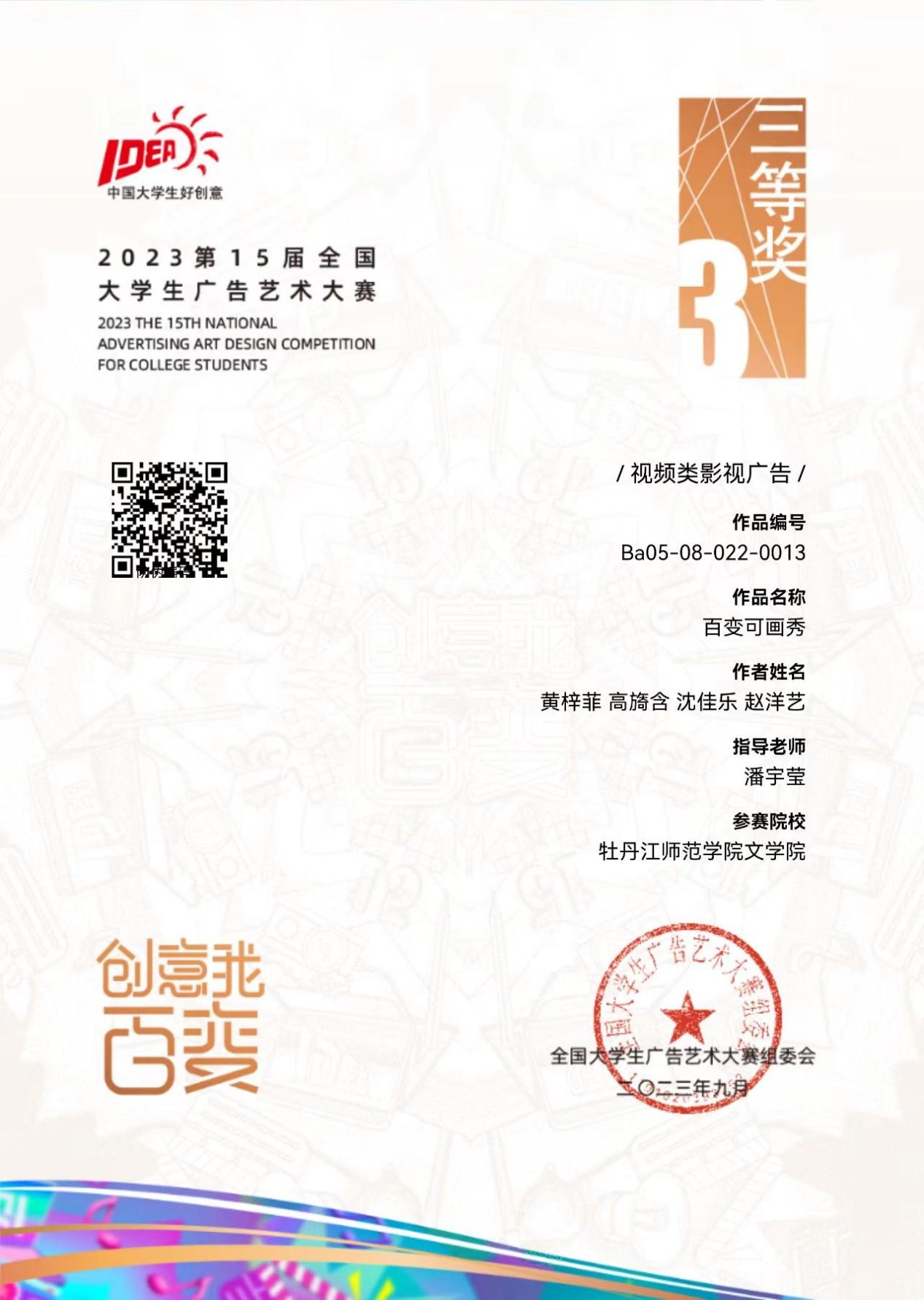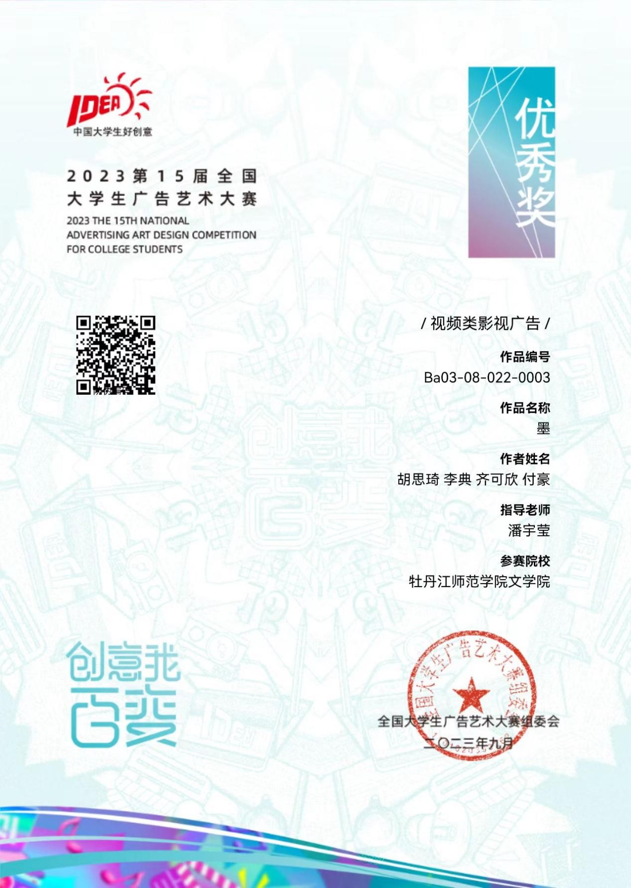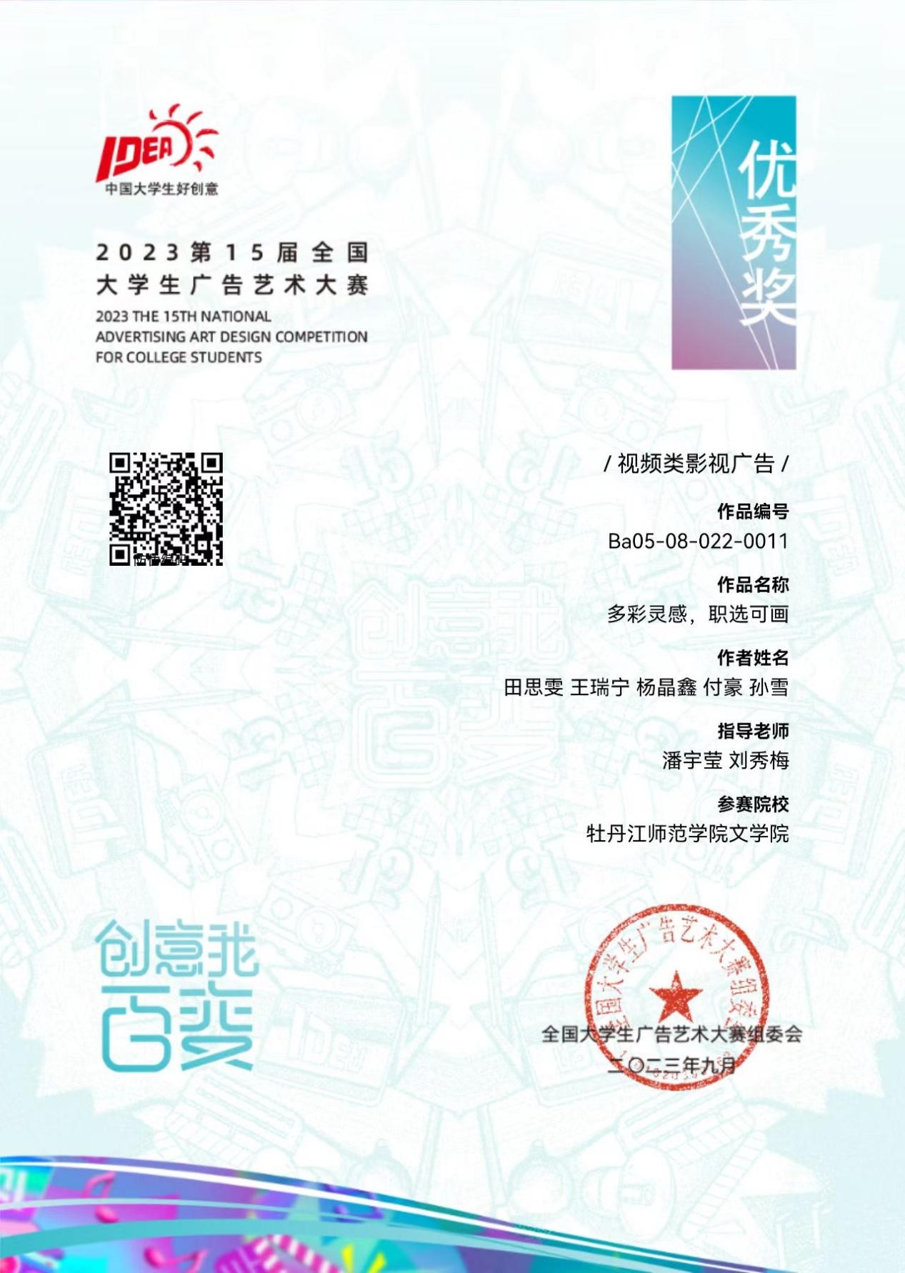 喜报!我校学生在2023年全国大学生广告艺术大赛中喜获佳绩