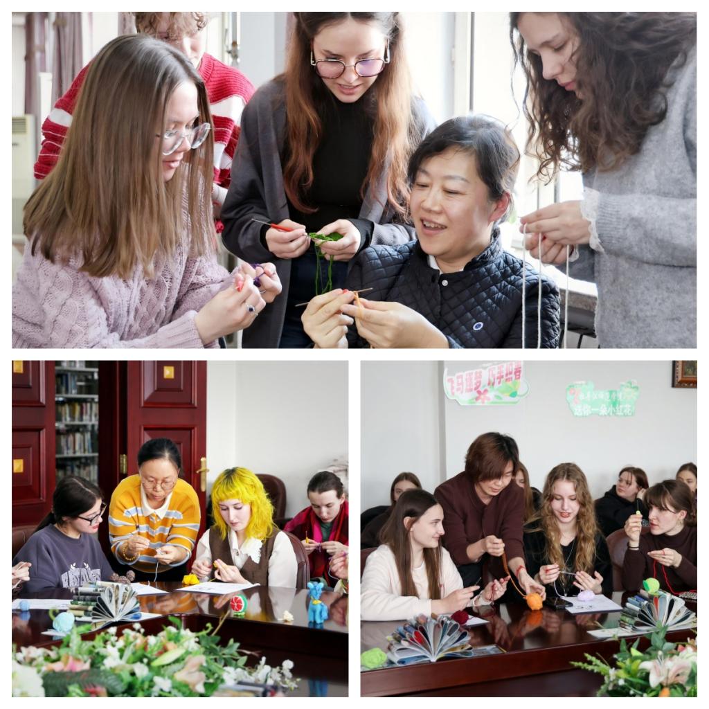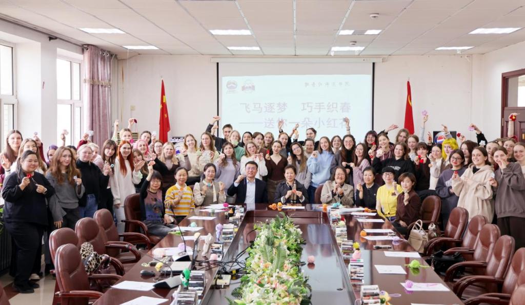 本次活动以中国钩织传统技艺为载体,旨在推动中俄人文交流走深走实,是学校落实我省“教育向北开放”战略,在“中俄教育年”框架下文化交流的生动实践。活动伊始,指导教师从钩织技艺的历史渊源讲起,深入阐释了其蕴含的“人与自然协调、技艺与心手合一”的东方造物智慧。在实践环节,留学生们左手持线、右手执针,在一钩一挑间,将彩色毛线幻化为立体精巧的“小红花”挂饰。一针一线,不仅织就了生动的作品,更织进了对中国文化的理解与热爱。